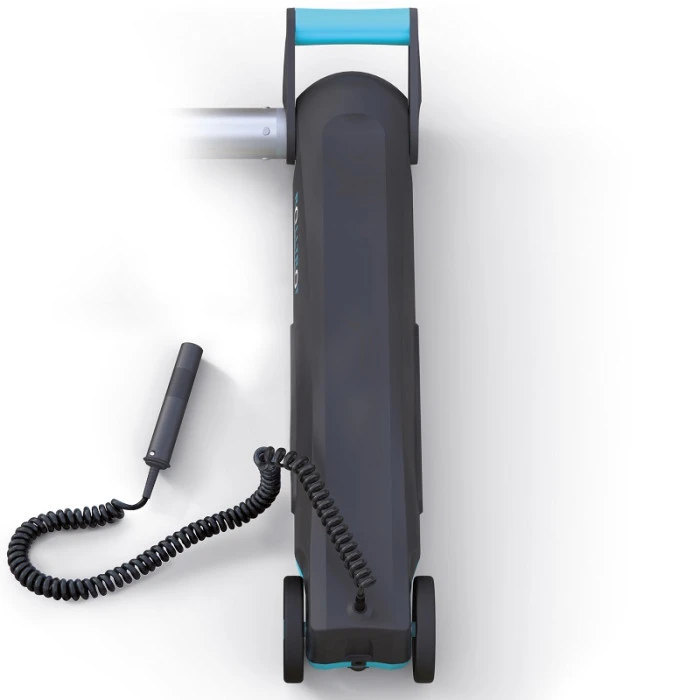 Il suffit de l’emboîter à l’emplacement prévu à cet effet sur votre bâche à barres, puis de le mettre en marche. Il tracera ensuite son chemin pour enrouler votre bâche en 2,30 minutes.