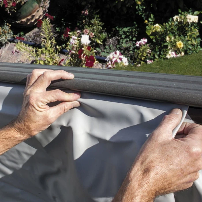 Le liner gris (épaisseur 60/100) a été traité contre les rayons ultraviolets et contre le vieillissement du PVC. Ce traitement lui assure pérennité et résistance.