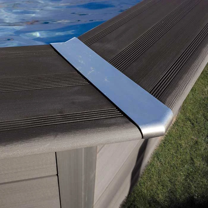 Cette piscine est fabriquée avec un nouveau matériau qui est composé d’un mélange de farine de bois et de polymères. Ces matériaux sont d’ailleurs écologiques, car recyclables.