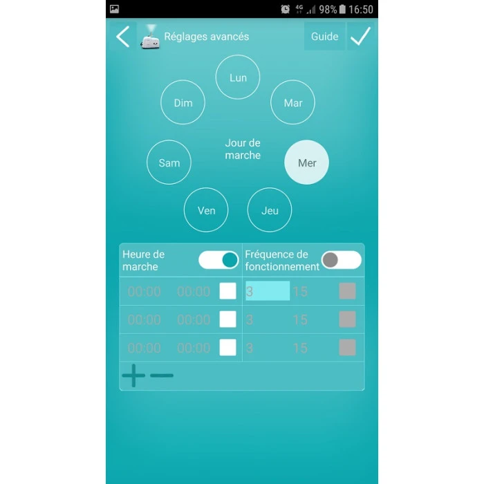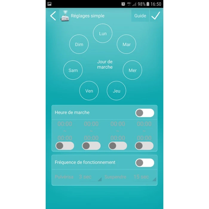 - Application Iphone ou Android permettant le réglage de la temporisation et la programmation horaire / journalière